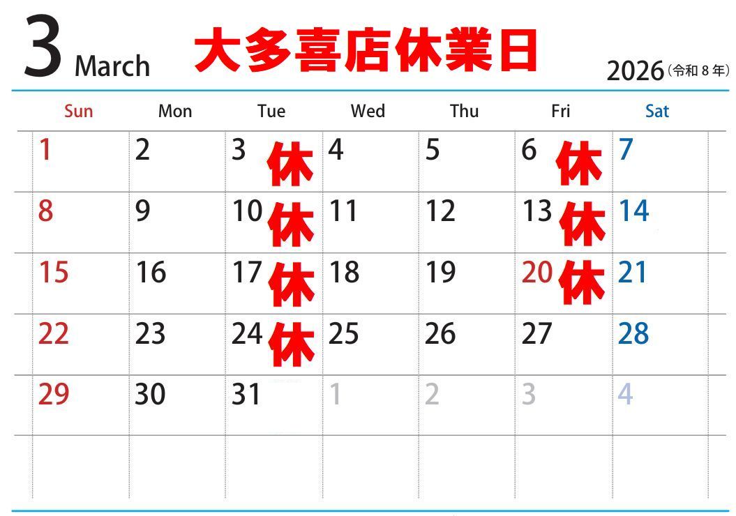 *大多喜店は休業日がございます*