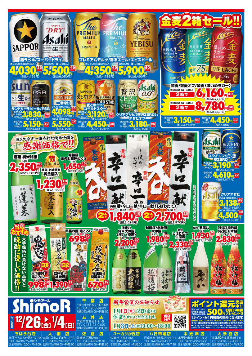 | シモアール 千葉店 (株式会社 下野酒店) 営業時間 10:00 - 19:00 / 1月1日、2日は休業 |